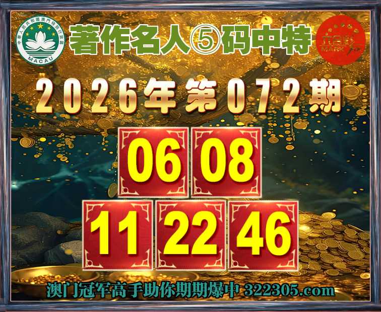 072期:《著作名人》 🏃♀️⑤码中特🏃♀️【06.08.11.22.46】开:46准