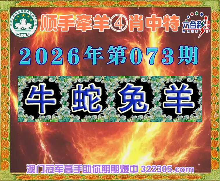073期:【顺手牵羊】 🀄④肖中特🀄【牛.蛇.兔.羊】开:鸡34错