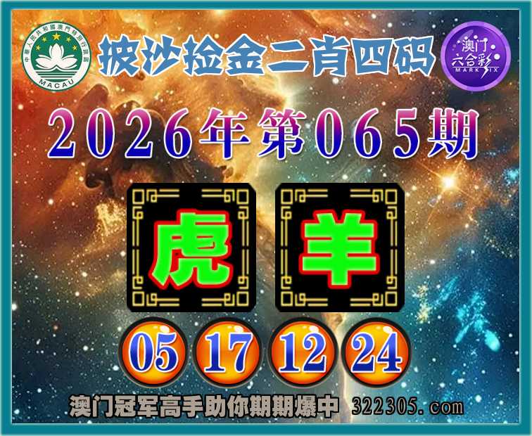 065期:【披沙捡金】 🏅二肖四码🏅【虎羊】【05.17.12.24】开:虎05准
