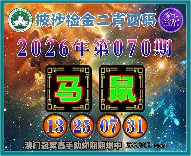 070期:【披沙捡金】 🏅二肖四码🏅【马鼠】【13.25.07.31】开:马25准