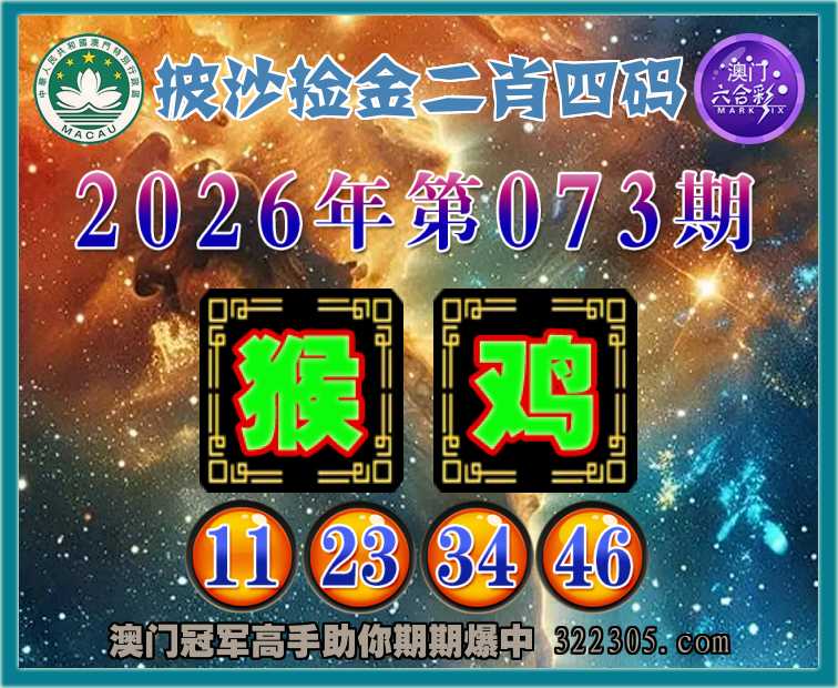 073期:【披沙捡金】 🏅二肖四码🏅【猴鸡】【11.23.34.46】开:鸡34准